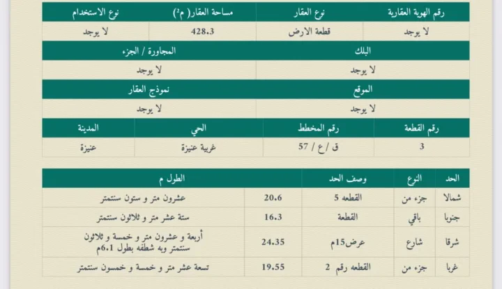 أرض للبيع في حي الوهلان, عنيزة, السعودية | مؤسسة بصمة التقني للخدمات العقارية الالكترونية